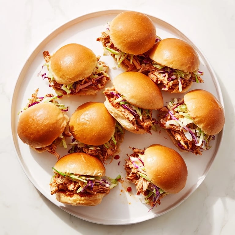 Save My neighbor knocked on my door holding a tray of these sliders, still warm, during a power outage last summer. We sat on the porch eating them by candlelight, and I realized I'd been overthinking party food for years. These little sandwiches pack serious flavor without any fuss, and the contrast between smoky chicken and crisp slaw makes every bite feel complete. I asked for the recipe that night, and now they show up at every gathering I host.