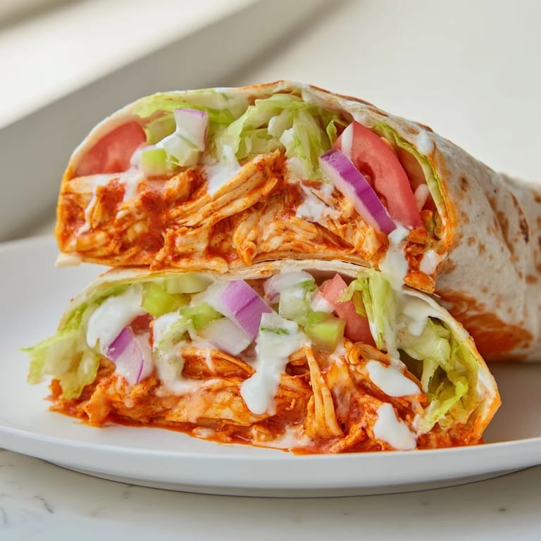 Save There's something about the way buffalo sauce hits hot cast iron that instantly reminds me why I keep coming back to this wrap. My roommate was hosting a game day a few years ago, and I had maybe thirty minutes to pull together something that felt both impressive and effortless. I remembered buffalo sauce sizzling in a pan, some tortillas in the drawer, and the creeping realization that I was about to invent something I'd make again and again. That first wrap came together almost by accident, but the moment everyone grabbed one without asking what it was, I knew I'd stumbled onto something special.