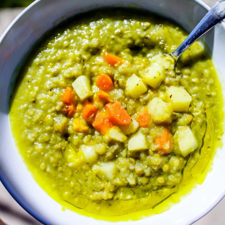 Save The weather had turned gray and relentless for three straight days, the kind where the sky presses down and even the house feels cold. I had a bag of split peas sitting in the pantry for months, one of those impulse purchases that seemed practical but never found the right moment. That afternoon, with rain drumming against the kitchen window, seemed like exactly the right moment. Something about peas and simmering broth feels like an act of defiance against winter.