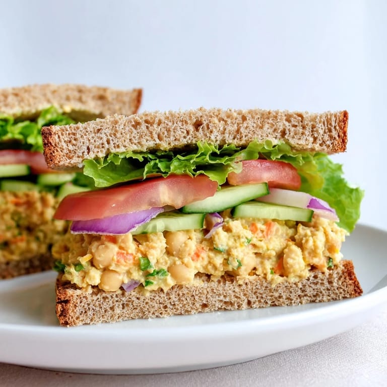 Save I discovered this sandwich on a Tuesday when I had nothing in the pantry except a forgotten can of chickpeas and bread going stale. What started as a quick lunch hack turned into something I now make twice a week, watching friends get genuinely surprised that it's completely vegan. The beauty of it isn't just how fast it comes together, but how it tastes even better the next day when the flavors mingle in the fridge.