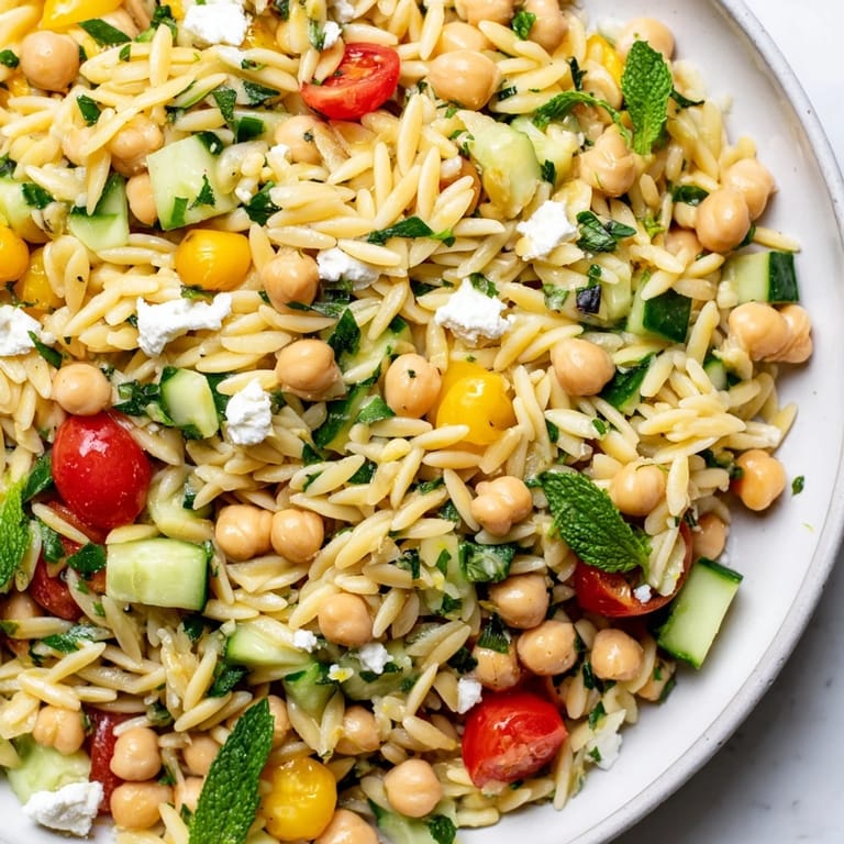 Save The sun was already baking through my kitchen window last July when I realized I had invited six friends over for lunch and absolutely no plan. I stared at my pantry, half panicked, until my hand landed on a box of orzo and a can of chickpeas that had been gathering dust. That afternoon became one of those beautiful kitchen accidents where everything just works.