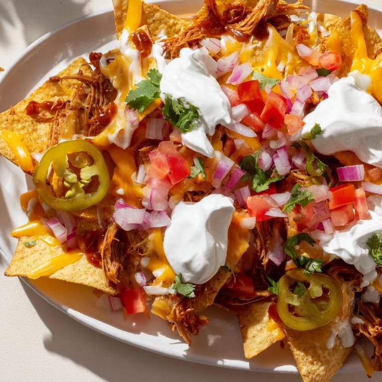 Save There's something about nachos that turns a casual evening into an event. I discovered this loaded version at a friend's game day—she'd made them with leftover pulled pork from her smoker, and I remember standing in her kitchen thinking I'd never seen anything look quite so indulgent on a platter. The way the queso pooled into the chips, how the sour cream caught the light when it hit the jalapeños—it felt like she'd cracked some secret code. I asked for the method that day, and years later, this is the version I keep coming back to.