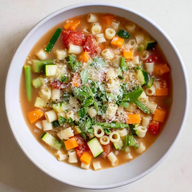 Save There is something deeply comforting about the sound of vegetables sizzling in olive oil, the way the kitchen fills with the aroma of garlic and onions transforming in the pan. I started making minestrone during those unpredictable shoulder seasons when you cannot quite commit to winter stew but crave something more substantial than a salad. This soup became my go-to for clearing out the vegetable drawer, a practice that turned what could have been food waste into something my family now requests by name.