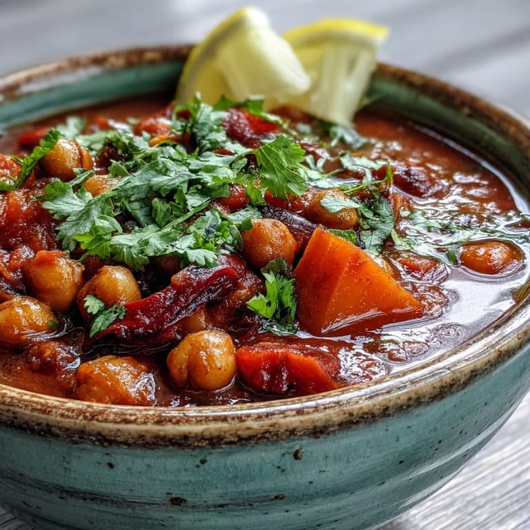 Save The aroma of this spicy chickpea stew takes me back to that first snowfall last winter when the flakes drifted against my kitchen window. I had just returned from the farmers market with a bag of vegetables and no particular plan. As the wind howled outside, my kitchen filled with the warming scent of cumin and cinnamon, creating an unexpected sanctuary from the cold. What started as a simple pantry meal has become my go-to comfort dish.